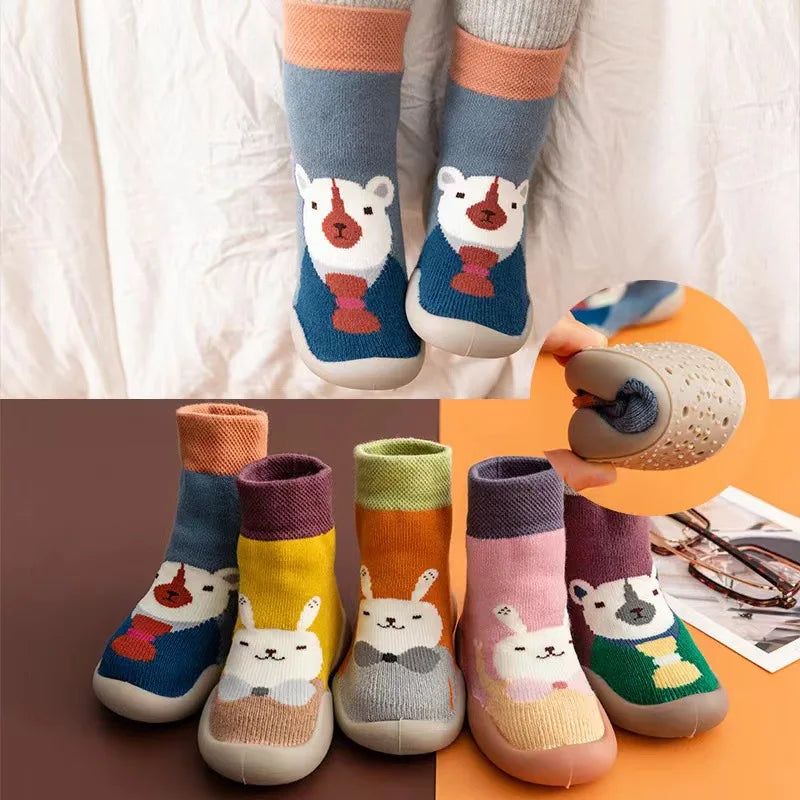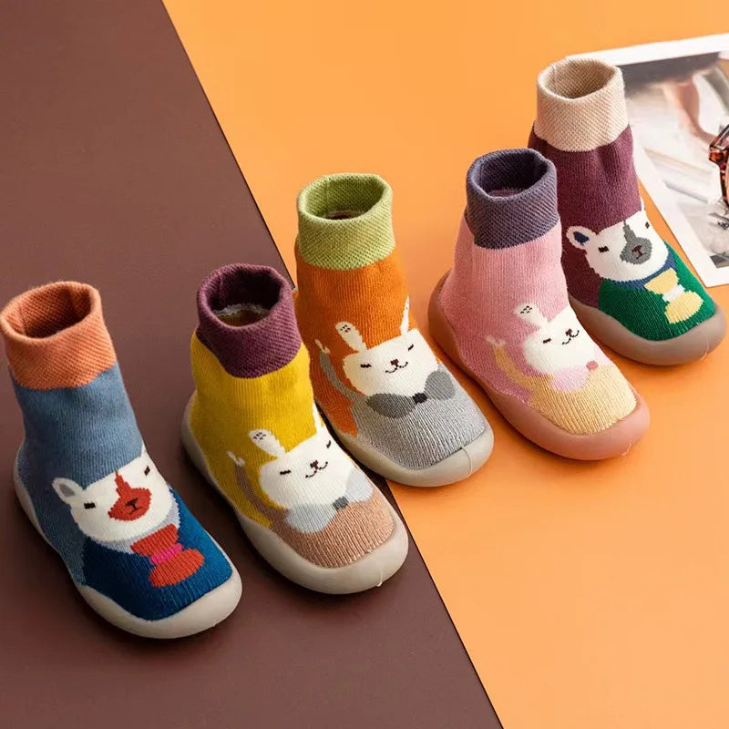 Zapatos tipo calcetín para los primeros pasos de tu bebé. Colección animales primavera otoño, calzado cómodo y muy divertido. ¡Tu peque querrá llevarlos siempre puestos!